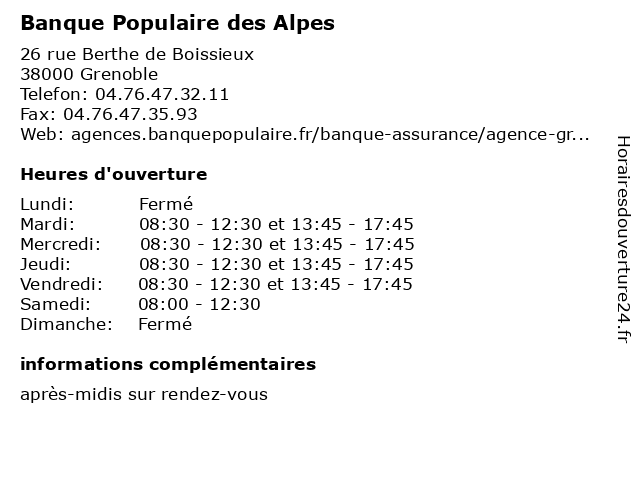 1 Banque Populaire des Alpes (Distance: 0,70 km) 13 Cours Jean Jaurès, 38000 Grenoble alpes, assurances, banque, des, populaire 2 Banque Populaire des Alpes (Distance: 0,84 km) 37 rue des Déportés 11 Novembre, 38100 Grenoble alpes, assurances, banque, des, populaire 3 Banque Populaire des Alpes (Distance: 1,33 km) 65 boulevard Joseph Vallier, 38100 Grenoble alpes, assurances, banque, des, populaire 4 Banque Populaire des Alpes (Distance: 3,22 km) 5-7 rue Beethoven, 38400 Saint-Martin-d'Hères alpes, assurances, banque, des, populaire 5 Banque Populaire des Alpes (Distance: 3,94 km) 31 rue Normandie Niemen, 38130 Échirolles alpes, assurances, banque, des, populaire 6 Banque Populaire des Alpes (Distance: 4,41 km) 142 avenue Jean Jaurès, 38320 Eybens alpes, assurances, banque, des, populaire |