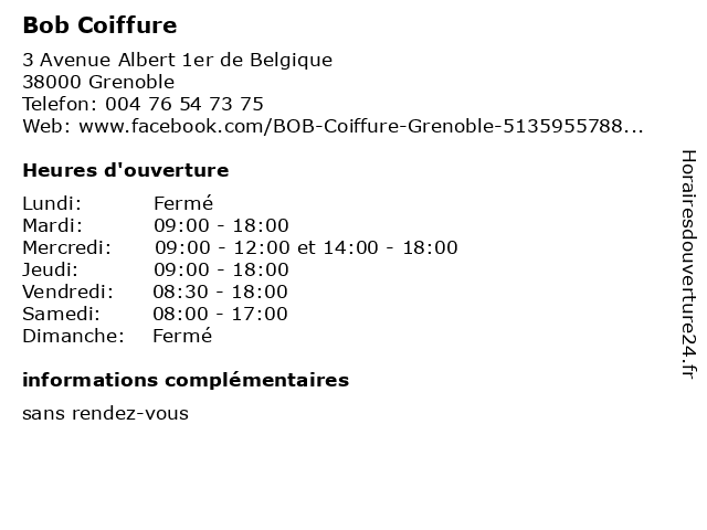 1 BOB Coiffure (Distance: 0,00 km) 3 Avenue Albert 1er de Belgique, 38100 Grenoble bob, coiffure, salon, styliste, visagiste 2 Anthémis Coiffure (Distance: 0,76 km) 48 Boulevard Gambetta, 38000 Grenoble anthemis, anthémis, cheveux, coiffure, coupe, salons 3 Ld Coiffure (Distance: 0,81 km) - Place Vaucanson, 38000 Grenoble cheveux, coiffure, coupe, ld, salons 4 Shop Coiffure (Distance: 1,03 km) 4 Rue Saint Jacques, 38000 Grenoble beauté, coiffeur, coiffure, services, shop 5 Egerine Coiffure (Distance: 1,18 km) 5 Rue Thiers, 38000 Grenoble cheveux, coiffure, coupe, egerine, salons 6 Vog Coiffure (Distance: 1,22 km) 3 Rue Lafayette, 38000 Grenoble beauté, coiffeur, coiffure, salons de coiffure, vog |