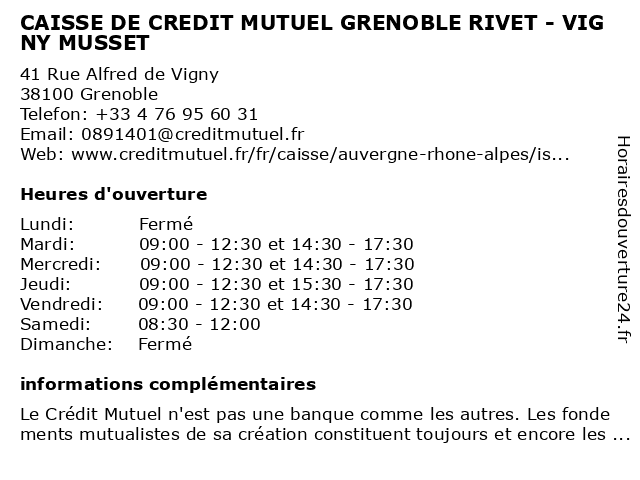 Termes de recherche pour CAISSE DE CREDIT MUTUEL GRENOBLE RIVET - VIGNY MUSSET:de, crédit, mutuel, caisse, vigny, grenoble, musset, rivet |