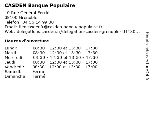 | Vendredi | 08:30-12:00 et 13:30-17:00 |