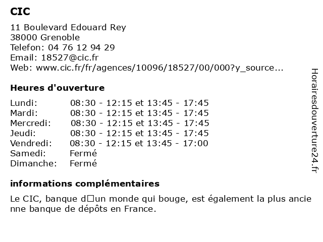 | Jeudi | 08:30-12:15 et 13:45-17:45 |