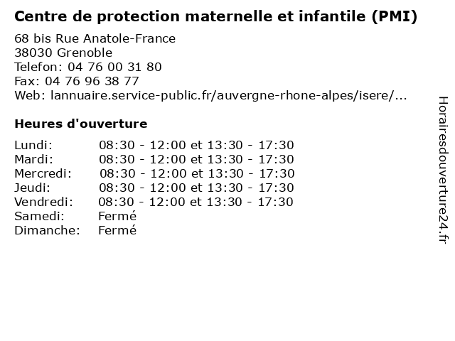1 Centre de protection maternelle et infantile (PMI) (Distance: 0,85 km) 171 cours de la Libération-et-Général-de-Gaulle, 38100 Grenoble administration, assoc, associations, centre, d'information, de, dédié, et, greffe, infantile, information, local, locale, maternelle, mission, personnes, pmi, protection 2 Centre de protection maternelle et infantile (PMI) (Distance: 1,38 km) 32 Rue de New-York, 38000 Grenoble centre, conseils, de, et, infantile, maternelle, parents, pmi, protection, prévention, puéricultrice, pédiatre 3 Centre de protection maternelle et infantile (PMI) (Distance: 1,69 km) 31 Rue Berthe de Boissieux, 38027 Grenoble centre, conseils, de, et, infantile, maternelle, parents, pmi, protection, prévention, puéricultrice, pédiatre 4 Centre de protection maternelle et infantile (PMI) (Distance: 2,29 km) 28 Rue de la Liberté, 38600 Fontaine centre, conseils, de, et, infantile, maternelle, parents, pmi, protection, prévention, puéricultrice, pédiatre 5 Centre de protection maternelle et infantile (PMI) (Distance: 2,40 km) 37 Rue Moyrand, 38100 Grenoble centre, conseils, de, et, infantile, maternelle, parents, pmi, protection, prévention, puéricultrice, pédiatre 6 Centre de protection maternelle et infantile (PMI) (Distance: 2,58 km) 28 Avenue de l'Europe, 38100 Grenoble centre, conseils, de, et, infantile, maternelle, parents, pmi, protection, prévention, puéricultrice, pédiatre |