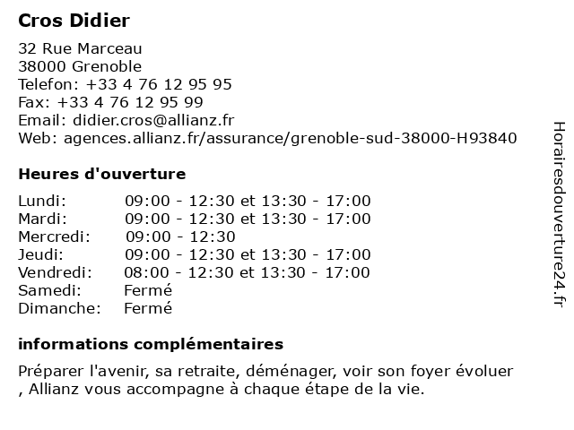 | Lundi | 09:00-12:30 et 13:30-17:00 |