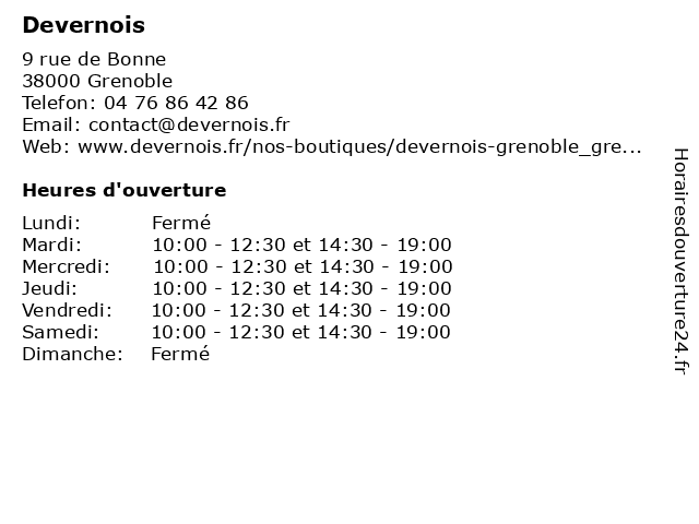| Samedi | 10:00-12:30 et 14:30-19:00 |