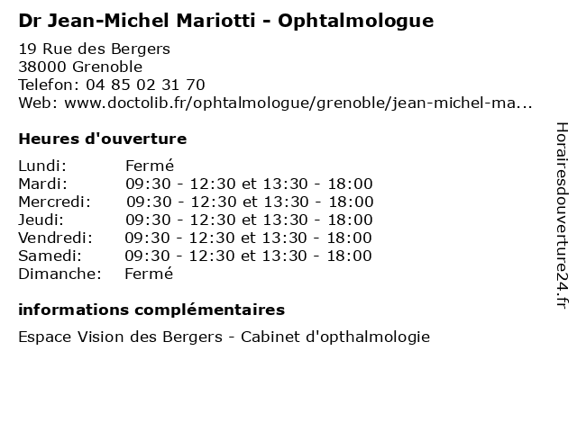 | Jeudi | 09:30-12:30 et 13:30-18:00 |