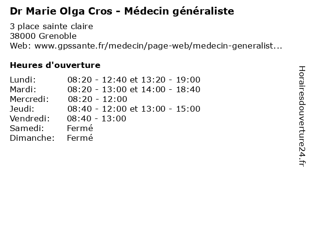 | Lundi | 08:20-12:40 et 13:20-19:00 |