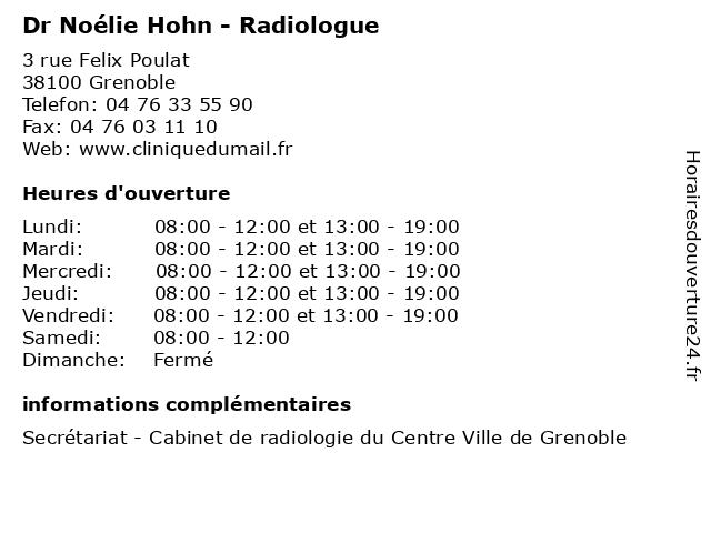| Lundi | 08:00-12:00 et 13:00-19:00 |