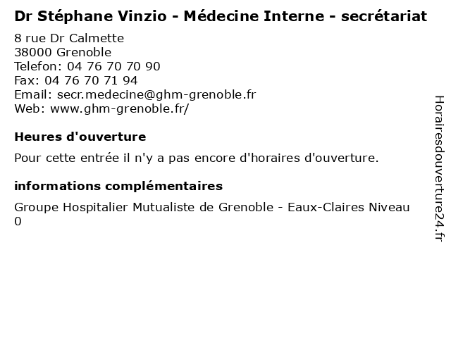 | Appeler Dr Stéphane Vinzio - Médecine Interne - secrétariat | |