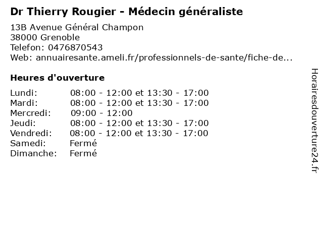 | Jeudi | 08:00-12:00 et 13:30-17:00 |
