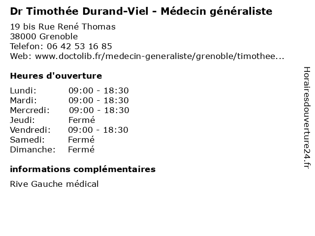 1 Maître Julien Durand - Avocat (Distance: 0,13 km) 13 rue d'Alembert, 38000 Grenoble avocat, avocate, avocats, civils, droits, durand, julien, juridiques, maître 2 Office notarial de Me Benjamin Durand (Distance: 0,47 km) 37 Rue Diderot, 38000 Grenoble benjamin, de, durand, me, notarial, office 3 Dr Emilie Durand - Anesthésiste (Distance: 0,87 km) 124 Rue d’Alembert, 38000 Grenoble anes, anesthésiste, dr, durand, emilie, réa, réanimateur 4 Fabien Durand - Pédicure-podologue - secretariat (Distance: 1,81 km) 50 Rue de Stalingrad, 38100 Grenoble durand, fabien, médecin, médecine, médical, pharmaceutique, podologue, pédicure, secfretariat, secretariat, traitement 5 Dr Aurélie Durand - Gastro-entérologue et hépatologue (Distance: 3,44 km) - Boulevard De La Chantourne, 38700 La Tronche aurelie, aurélie, consultation, docteur, dr, durand, entérologue, et, gastro, hépatologue, med, médecin, traitement 6 Durand Services (Distance: 3,87 km) 7 Rue des Glairons, 38400 Saint Martin d’Heres accessoires, auto, automobiles, durand, magasins, pièces, services |