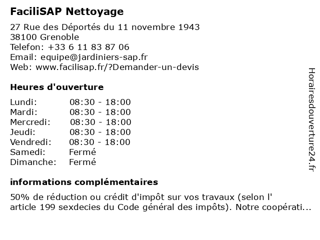 | Lundi | 08:30-18:00 |