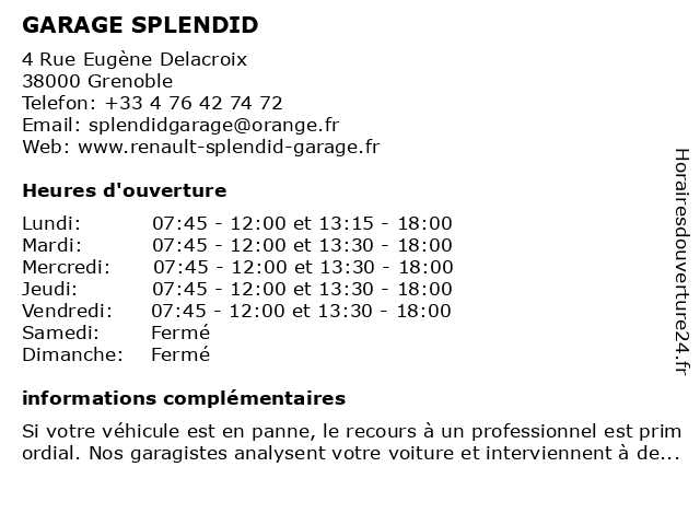 | Lundi | 07:45-12:00 et 13:15-18:00 |