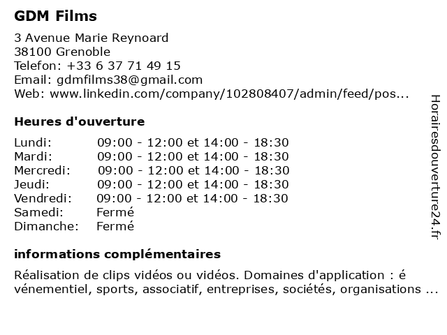 | Lundi | 09:00-12:00 et 14:00-18:30 |