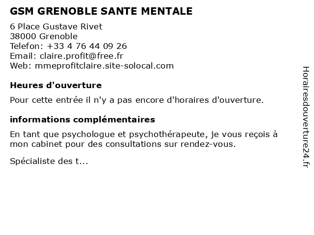 | Appeler GSM GRENOBLE SANTE MENTALE | |