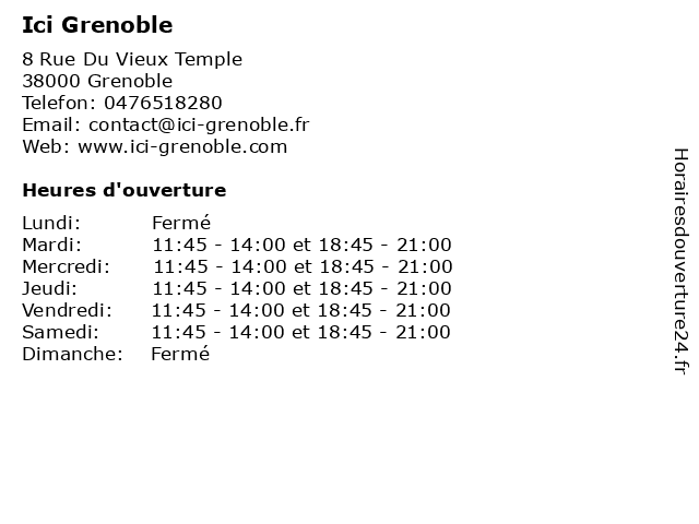 | Mardi | 11:45-14:00 et 18:45-21:00 |