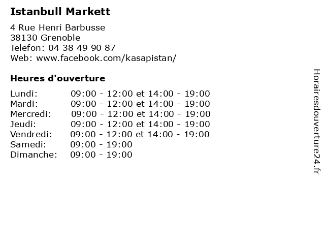 1 Restaurant L'Istanbul (Distance: 44,09 km) 28 Rue de la République, 38490 Les Abrets-en-Dauphiné dalkilinc, istanbul, l'istanbul, restaurant, restaurants, restaurent 2 Restautant Istanbul (Distance: 50,36 km) 3 Rue Du 19 Mars 1962, 38110 La Tour-du-Pin concept, istanbul, pro, restaurants, restautant 3 Istanbul Kebab (Distance: 59,28 km) 12 rue Bocon de la Merlière, 26330 Châteauneuf-de-Galaure dogan, istanbul, kebab, mehmet, restaurants 4 Casino Supermarché (Distance: 0,14 km) 46 Cours Jean Jaurès, 38130 Echirolles alimentation, boisson, casino, supermarché, épicerie 5 Boucherie du Cours (Distance: 0,36 km) 72 Cours Jean Jaurès, 38130 Grenoble boissons, boucherie, cours, du, echirolles, magasin, nourriture 6 KFC Drive (Distance: 0,71 km) 1 rue de Comboire, 38130 Echirolles boissons, burger, drive, fastfood, frites, kfc, restaurant |