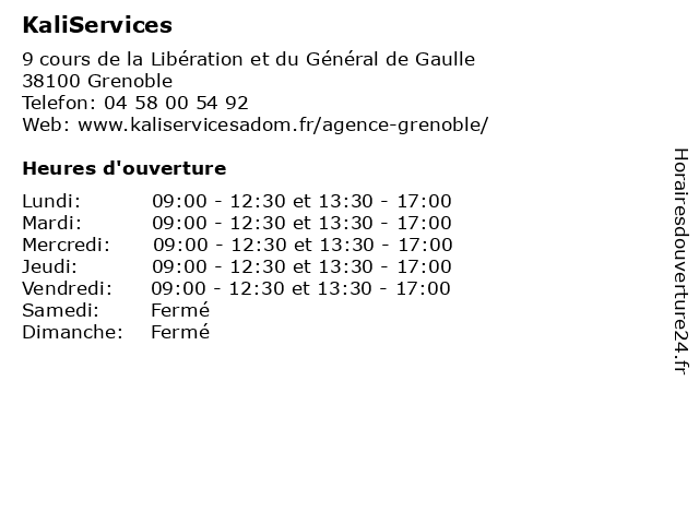 | Lundi | 09:00-12:30 et 13:30-17:00 |
