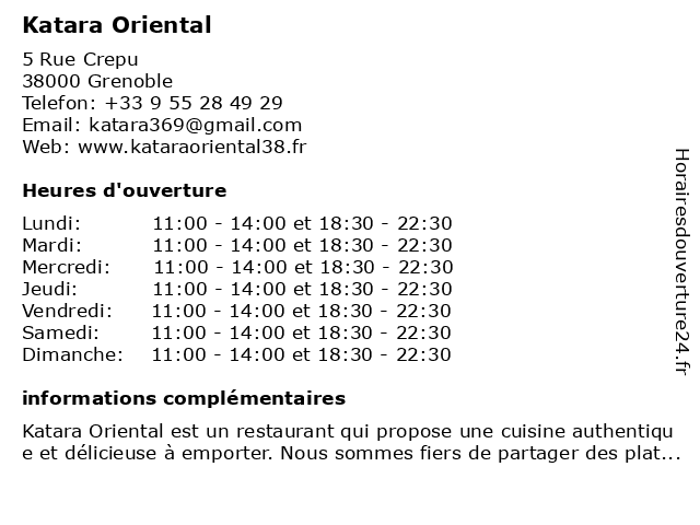 | Samedi | 11:00-14:00 et 18:30-22:30 |