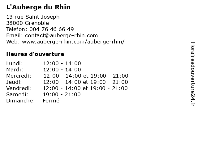 | Jeudi | 12:00-14:00 et 19:00-21:00 |