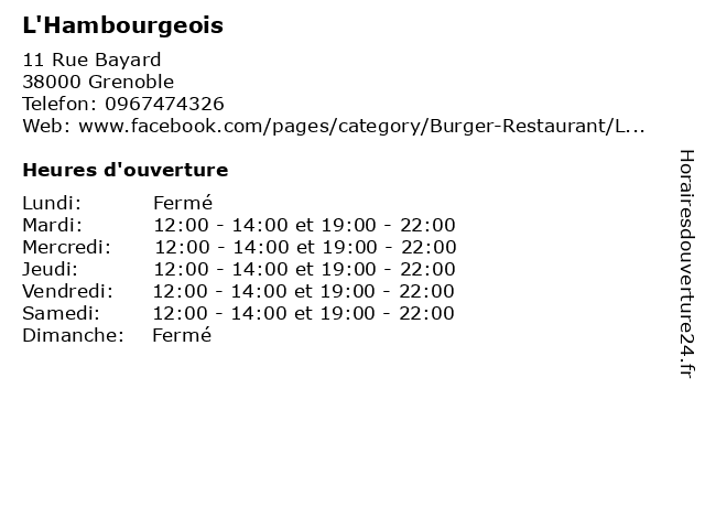 | Jeudi | 12:00-14:00 et 19:00-22:00 |