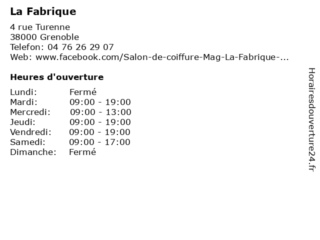 | Lundi | Fermé |