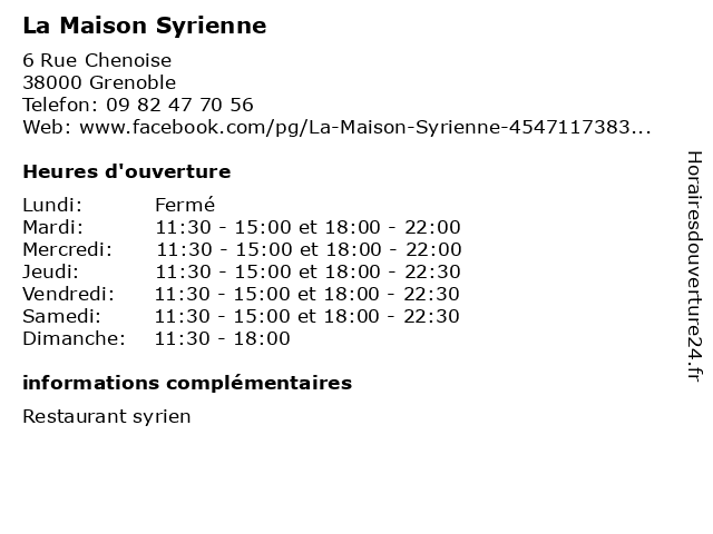 | Mardi | 11:30-15:00 et 18:00-22:00 |