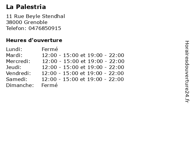 | Samedi | 12:00-15:00 et 19:00-22:00 |