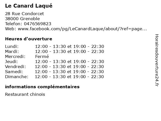 | Jeudi | 12:00-13:30 et 19:00-22:30 |