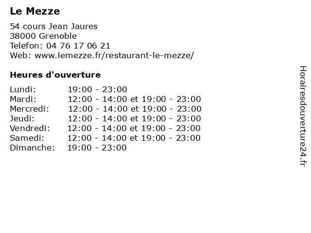 | Mardi | 12:00-14:00 et 19:00-23:00 |