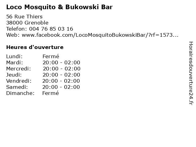 Termes de recherche pour Loco Mosquito & Bukowski Bar:restauration, bar, brasserie, loco, mosquito, bukowski |