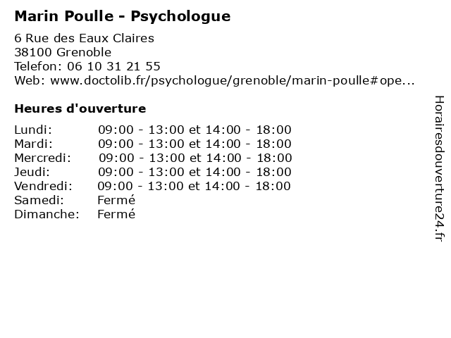 | Mardi | 09:00-13:00 et 14:00-18:00 |