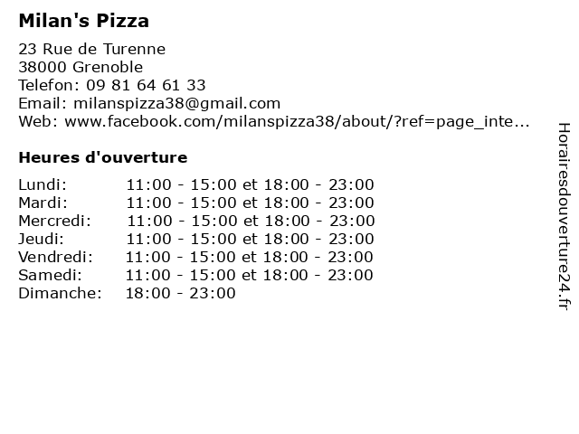 | Lundi | 11:00-15:00 et 18:00-23:00 |