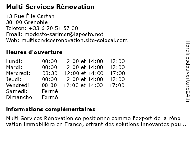 | Lundi | 08:30-12:00 et 14:00-17:00 |