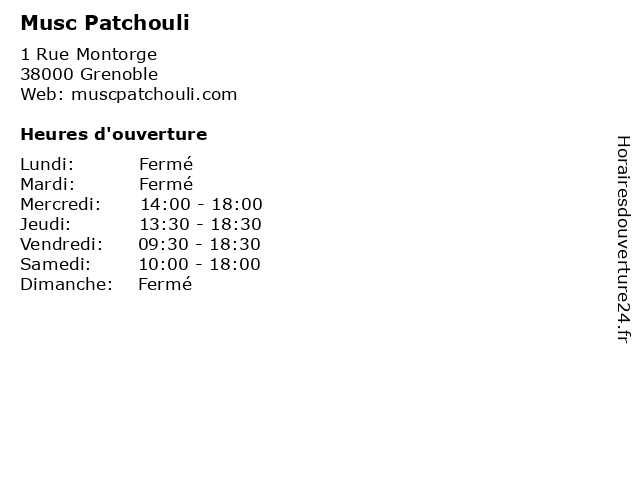 | Lundi | Fermé |