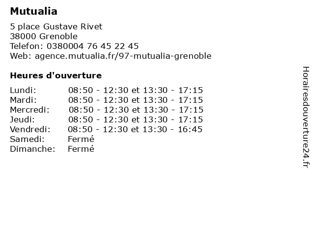 4 Mutualia (Distance: 2,43 km) 75 avenue Gabriel Péri, 38400 Saint Martin d Hères assurance, mutualia, prévoyance, sante, services 6 Maaf Assurances SA (Distance: 1,56 km) 1 ET 3 Rue Jules Flandrin, 38100 Grenoble assurance, assurances, incendie, maaf, maritime, sa, sinistres |