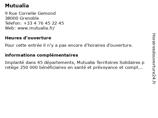1 Mutualia (Distance: 1,05 km) 5 place Gustave Rivet, 38000 Grenoble assurance, incendie, maritime, mutualia, sante, sinistres 4 Mutualia (Distance: 1,93 km) 75 avenue Gabriel Péri, 38400 Saint Martin d Hères assurance, mutualia, prévoyance, sante, services 6 Mutualia (Distance: 44,97 km) 20 avenue des Chevaliers Tireurs, 73000 Chambery assurance, mutualia, prévoyance, sante, services |