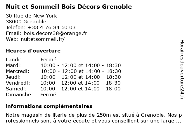 | Mercredi | 10:00-12:00 et 14:00-18:30 |