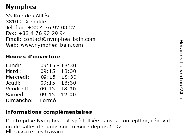 1 Nymphea Fleurs (Distance: 59,71 km)265 Grande Rue, 38510 Morestel fleurs, nymphea