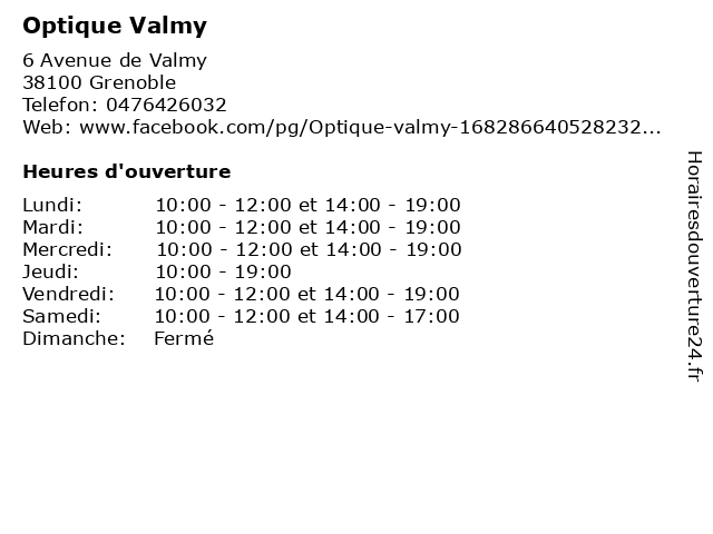 | Vendredi | 10:00-12:00 et 14:00-19:00 |