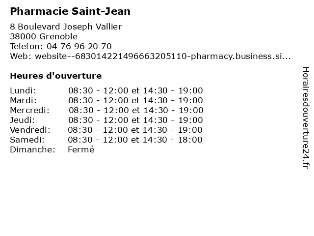 | Lundi | 08:30-12:00 et 14:30-19:00 |