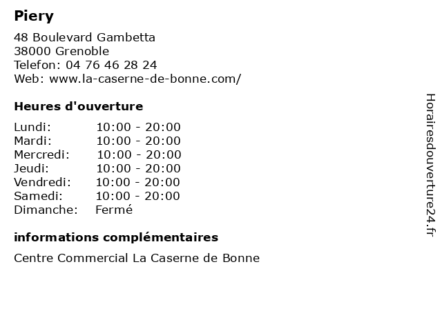 1 Piery (Distance: 7,78 km) 1 Rue des Abattoirs, 38120 Saint Egreve beaute, cafe, charline, chaussures, enfants, hommes, lingerie, mode femmes, piery, restaurant, sport 2 Best Mountain (Distance: 0,00 km) 48 Boulevard Gambetta, 38000 Grenoble beaute, best, deco, enfants, maison, mode femme, mode hommes, mountain, restaurant, sport 3 Bleu Cerise (Distance: 0,00 km) 48 Boulevard Gambetta, 38000 Grenoble beaute, bleu, cerise, deco, enfants, maison, mode femme, mode hommes, restaurant, sport 4 Blue Box (Distance: 0,00 km) 48 Boulevard Gambetta, 38000 Grenoble beaute, blue, box, deco, enfants, maison, mode femme, mode hommes, restaurant, sport 5 Coffee Shop (Distance: 0,00 km) 48 Boulevard Gambetta, 38000 Grenoble beaute, coffee, deco, enfants, maison, mode femme, mode hommes, restaurant, shop, sport 6 Créafête (Distance: 0,00 km) 48 Boulevard Gambetta, 38000 Grenoble beaute, créafête, deco, enfants, maison, mode femme, mode hommes, restaurant, sport |