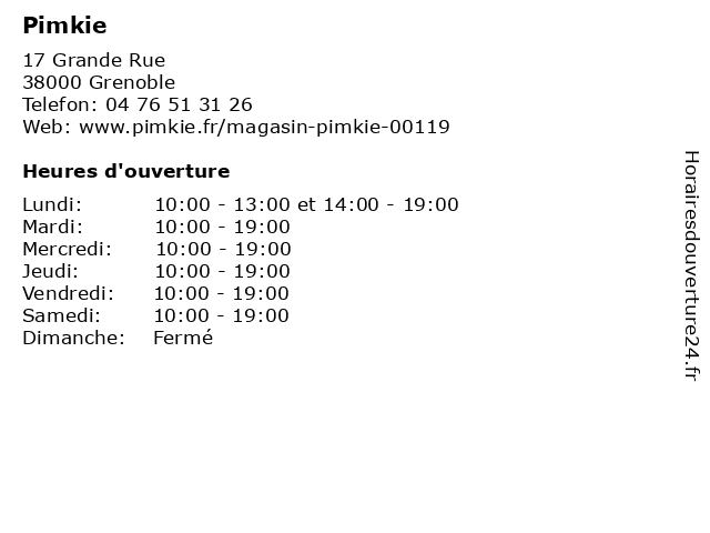 1 Pimkie (Distance: 3,69 km) 55 Grand’place, 38100 Grenoble accessoires, chaussure, femme, mode, pimkie, vêtements 3 Pimkie (Distance: 44,05 km) 155 Place Saint Leger, 73000 Chambéry accessoires, mode, pimkie, vêtements 4 Pimkie (Distance: 56,35 km) 48-50 Rue de la Liberté, 38300 Bourgoin Jallieu accessoires, chaussure, femme, mode, pimkie, vêtements 5 MIni Bus (Distance: 0,02 km) 16 Rue des Clercs, 38000 Grenoble accessoires, achat., bus, magasin importateur inhabituel, mini, vente au détail 6 Imode (Distance: 0,02 km) 12 Grande Rue, 38000 Grenoble femme, imode, lingerie, magasin de vêtements, mode, shopping |