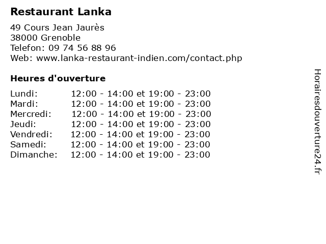 | Dimanche | 12:00-14:00 et 19:00-23:00 |