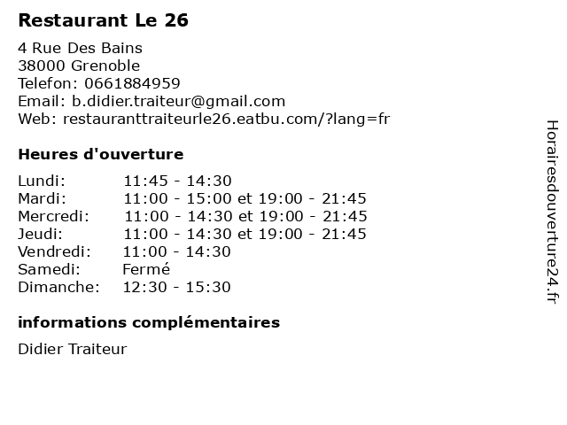 Termes de recherche pour Restaurant Le 26:restaurant, café, le, bar, restaurants, didier, traiteur, 26 |