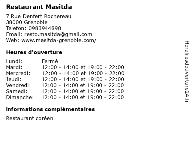 | Dimanche | 12:00-14:00 et 19:00-22:00 |