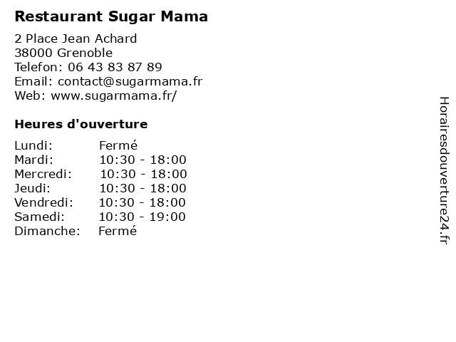 | Lundi | Fermé |