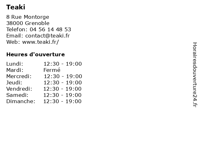 1 Lu Shan - Art du thé (Distance: 0,31 km) 12 Rue Barnave, 38000 Grenoble art, business, coffee, du, lu, shan, shop, tea, thé 2 Jardin du Thé (Distance: 0,31 km) 1-2 Rue Millet, 38000 Grenoble du, jardin, pâtisserie, salon de thé, thé 3 Le Sélect Lounge Bar (Distance: 0,36 km) 2 Rue Auguste Gaché, 38000 Grenoble bar, boissons, chicha, cocktail, le, lounge, musique, pub, sélect, thé 4 Lu Shan - Art du Thé (Distance: 0,47 km) rue de Strasbourg 2, 38000 Grenoble art, boutique, cafetière, chope, du, grenoble, lu, pichet, shan, thé 5 Charabica Café (Distance: 0,52 km) 8 Cours Berriat, 38000 Grenoble bar, bar à chats, boissons, café, charabica, cocktail, musique, pub, restaurant, restauration, salon de thé 6 French Coffee Shop (Distance: 0,77 km) 5 place Championnet, 38000 Grenoble bar, café, coffee, espresso, french, salon, shop, thé |