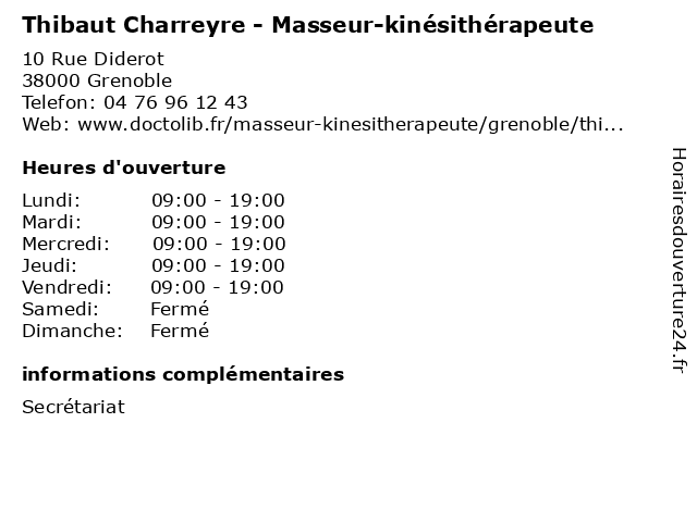 1 Maître Thibaut Hemour - Avocat (Distance: 1,75 km) 56 boulevard Gambetta, 38000 Grenoble avocat, avocate, avocats, civils, droits, hemour, juridiques, maître, thibaut 2 Dr Thibaut Trouve-Buisson - Anesthésiste (Distance: 3,79 km) - Boulevard De La Chantourne, 38700 La Tronche anesthésiste, buisson, consultation, docteur, dr, med, médecin, thibaut, traitement, trouve 4 Thibaut Avenier - Masseur-kinésithérapeute (Distance: 30,25 km) - Station de l'Alpe d'Huez, 38750 Huez avenier, consultation, docteur, kinésithérapeute, masseur, med, médecin, médecine, thibaut, traitement 5 Coursier Velo (Distance: 44,13 km) 5 Rue Richard Schneeweis, 73110 La Rochette coursier, jeannolin, marcel, restaurants, thibaut, velo 6 Thibaut Estrabol - Ostéopathe (Distance: 57,08 km) - Avenue Charles Chabert, 26260 Saint-Donat-sur-l'Herbasse estrabol, ostéo, ostéopathe, ostéopathes, soins, thibaut |