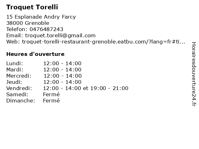 | Vendredi | 12:00-14:00 et 19:00-21:00 |