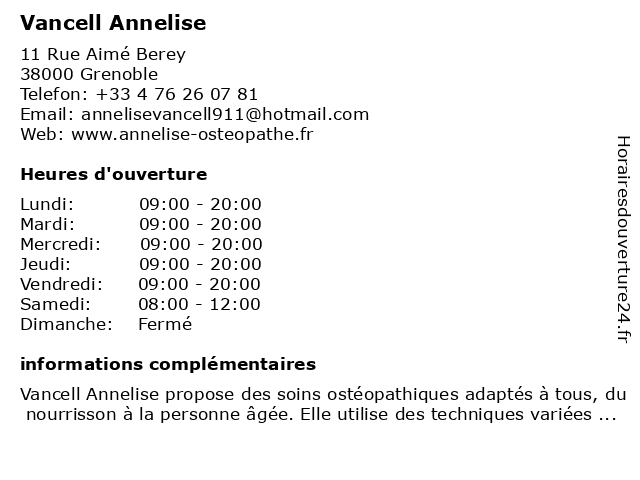 Vancell Annelise propose des soins ostéopathiques adaptés à tous, du nourrisson à la personne âgée. Elle utilise des techniques variées telles que musculo-squelettiques, viscérales et crân...